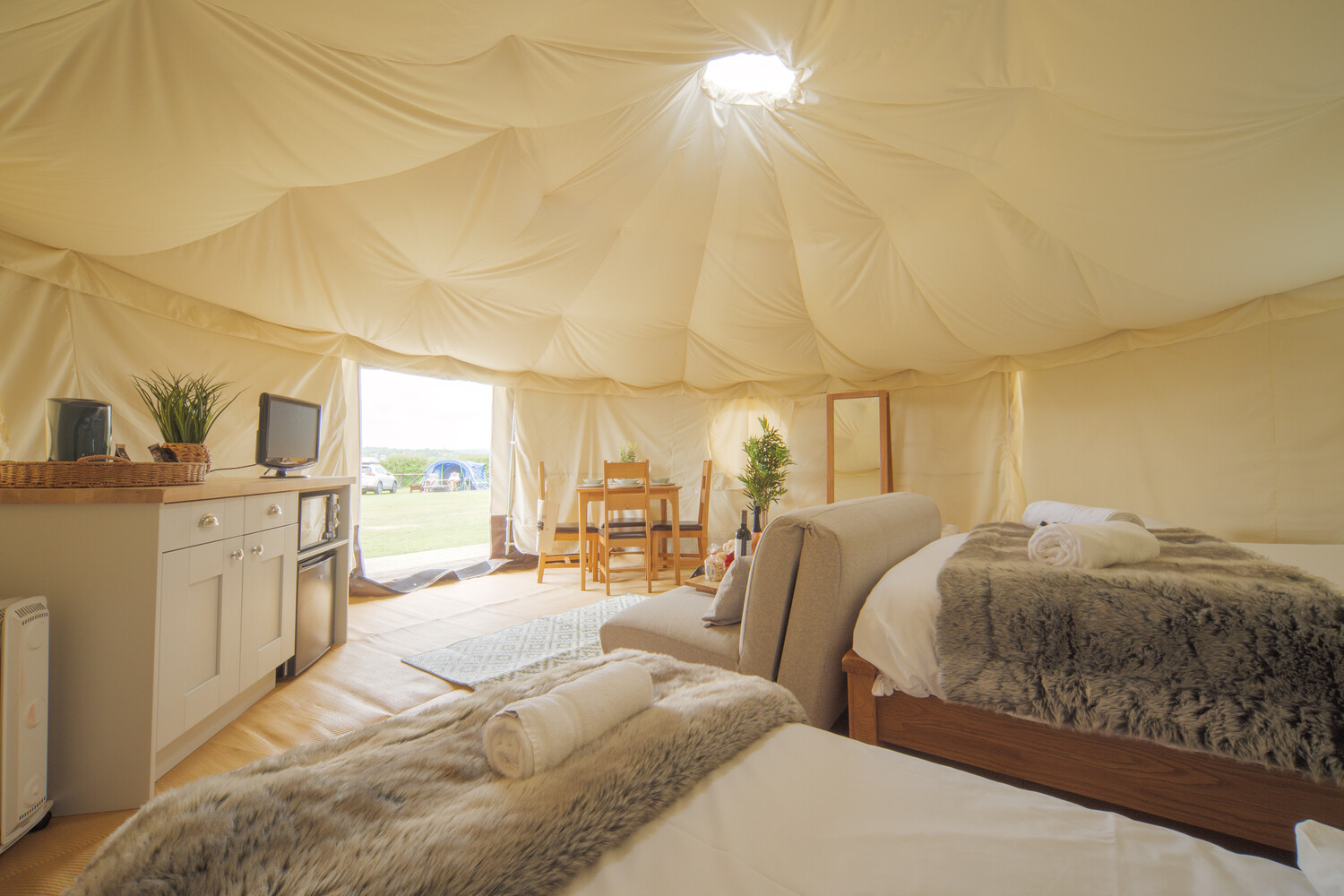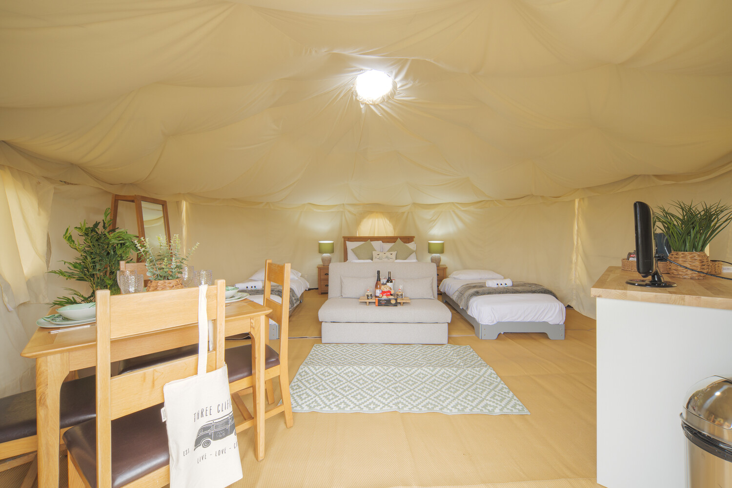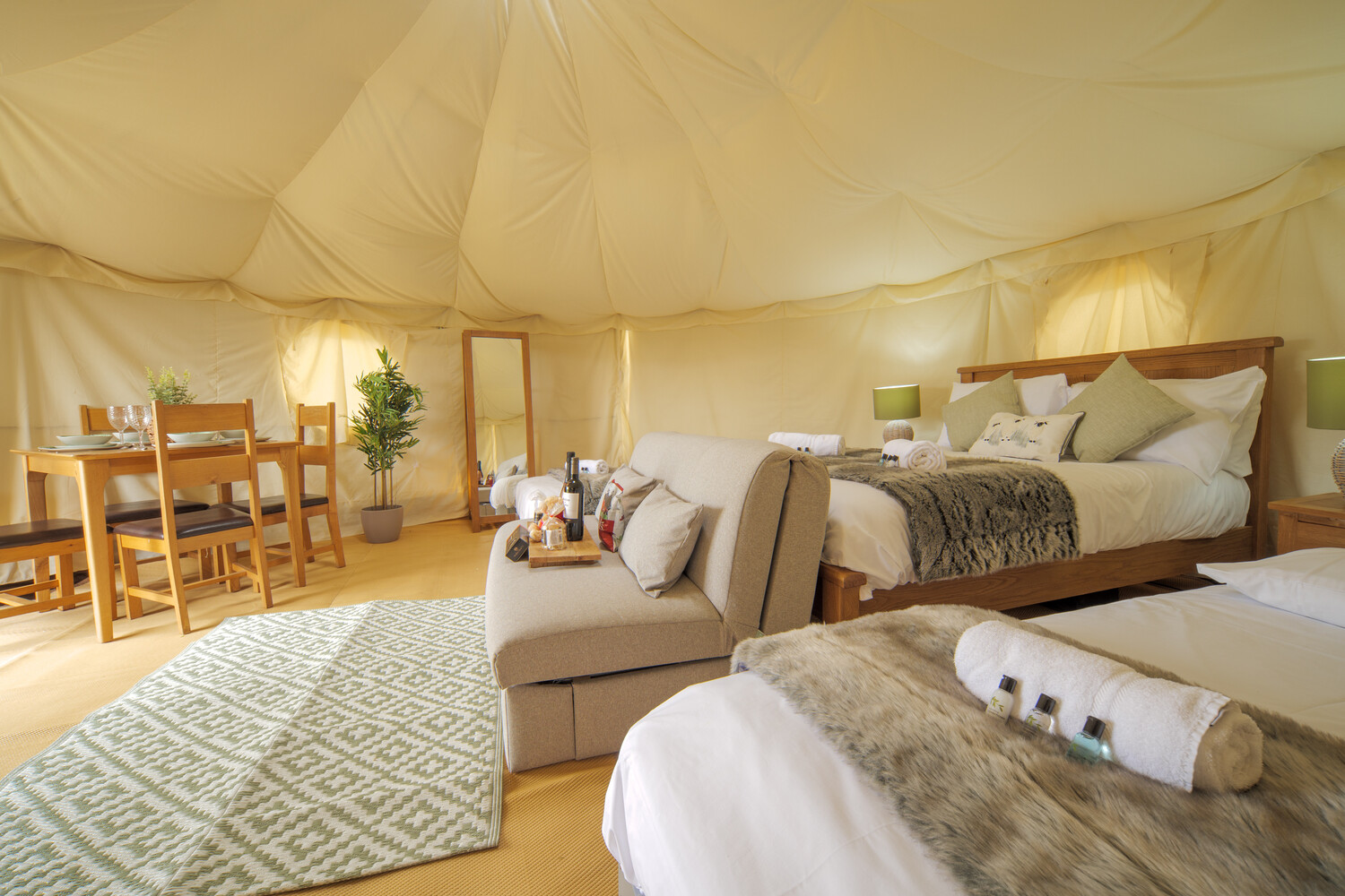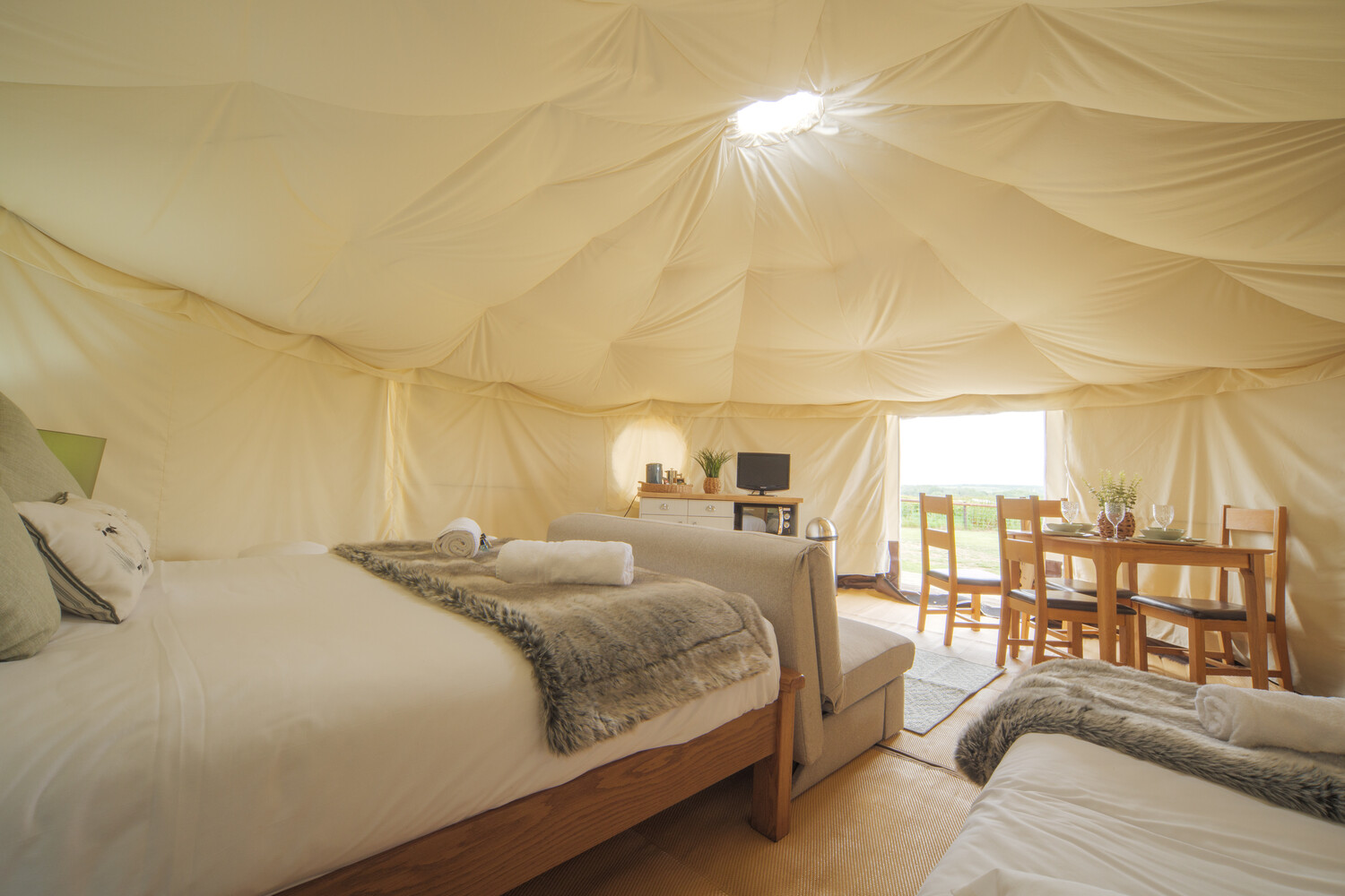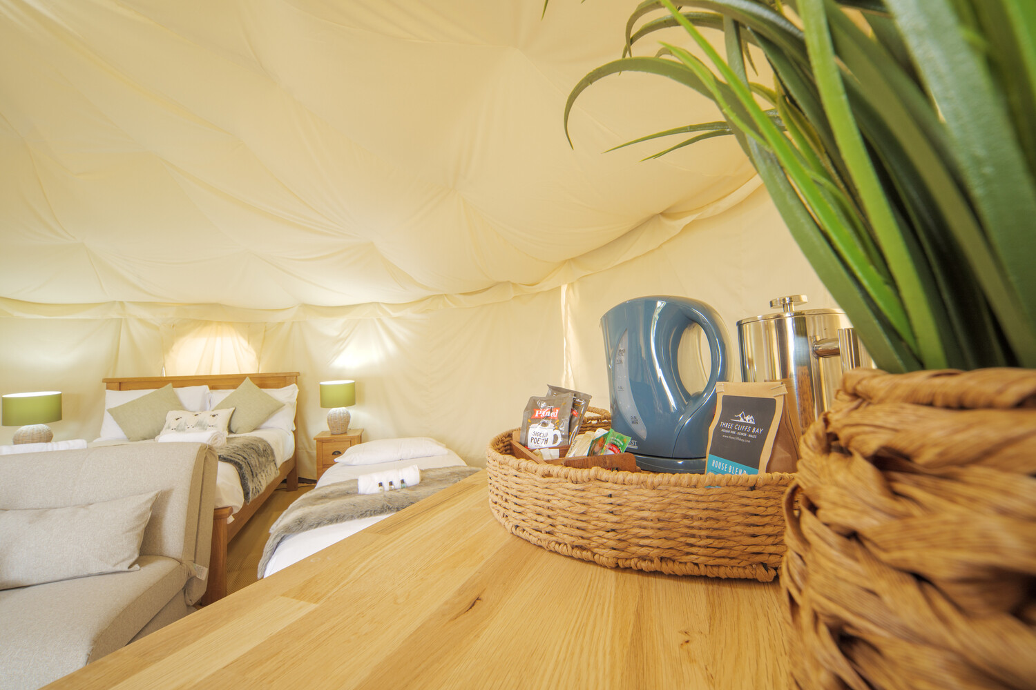 Enjoy the luxury side of camping in one of our modern Glamping Tents, just a short walk from the beach. These spacious and luxurious new Glamping Tents sleep up to 5 comfortably. Dogs are also welcome.
