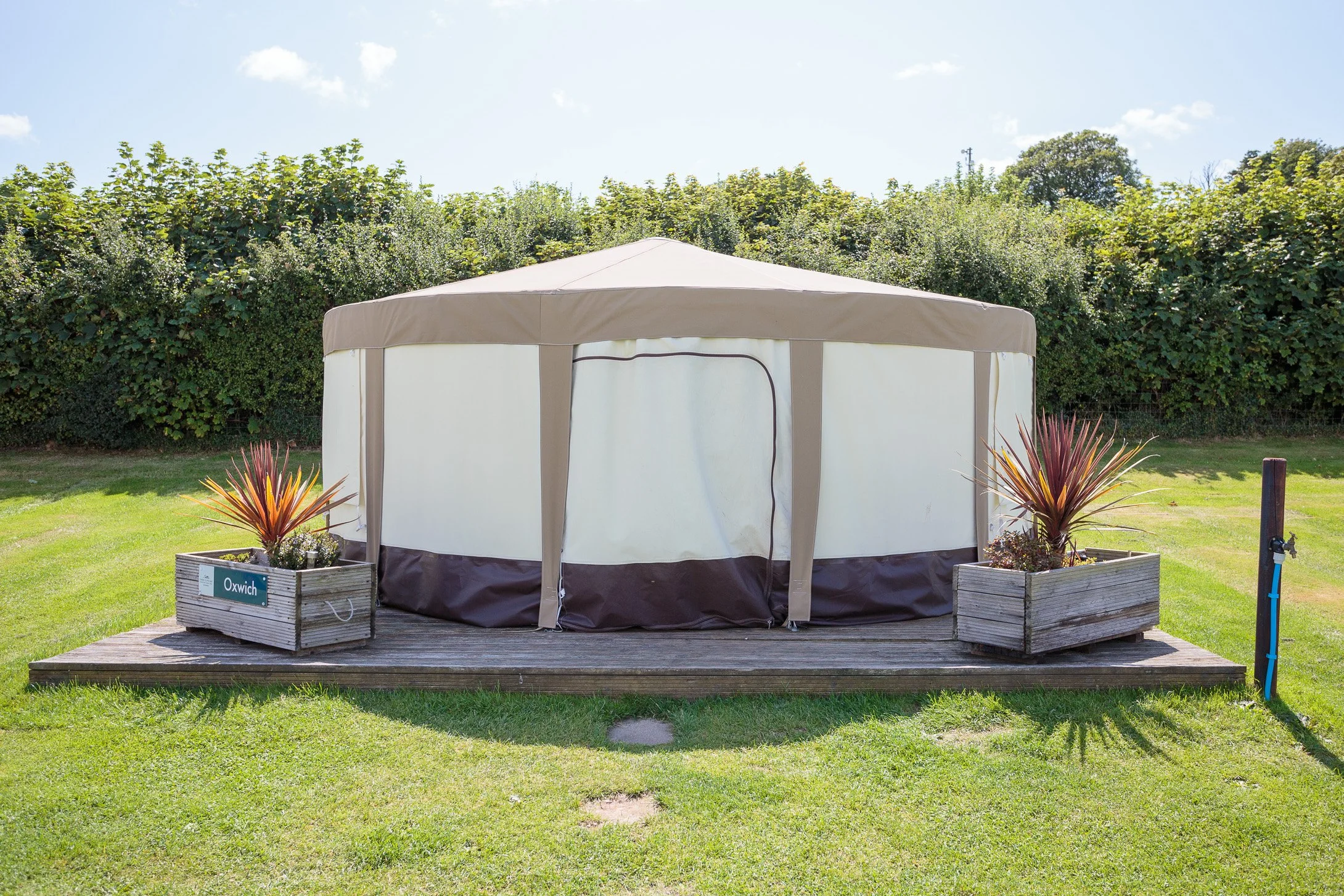 Our Glamping Tents are minimum 5m diameter, and sleep up to 5 people (and are also dog and infant friendly).
